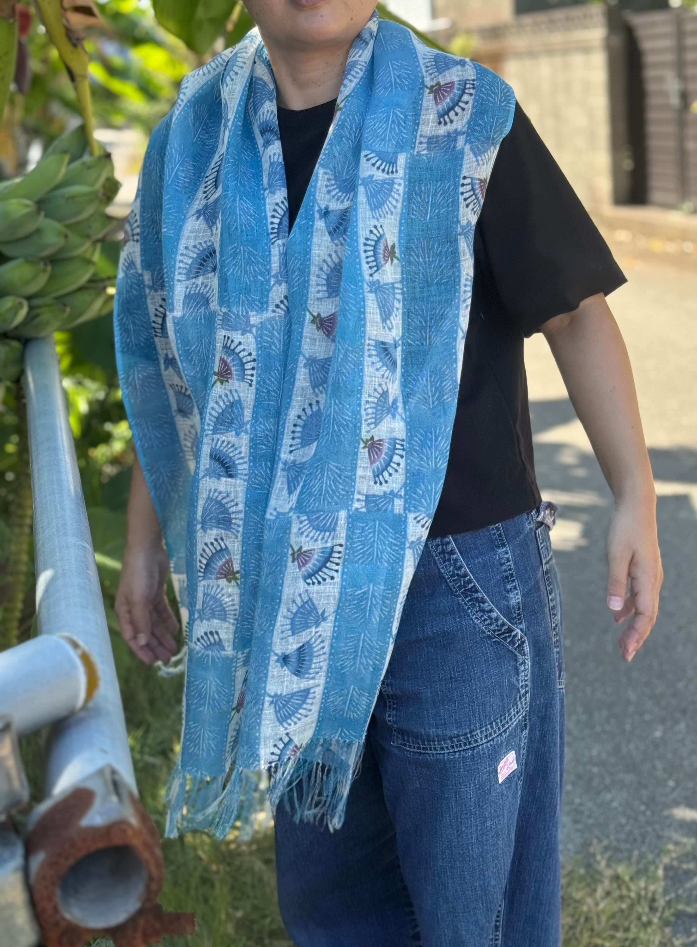 夜にひっそり咲くサガリバナ。たわわに連なって咲く花をモチーフにしてインドリネンの生地に染めました。 サラッとした質感とサガリバナ柄のストライプが特徴です。 ・サイズ:幅(約43cm) 長さ(186cm) ・素材:インドリネン100% 顔料、化学染料を使用。 【お取り扱い方法】 KATACHIKIのストールはご自身で手洗いすることができます。(特別なクリーニングなどする必要はございません) 手染め紅型は顔料(鉱物性)で染めています。 顔料は退色に強く発色がよいのですが、摩擦に弱い性質があります。 お洗濯する際は他の物と一緒にせず漂白剤、蛍光剤が入っていない洗剤で押し洗いしてください。 強く擦ったり、濡れた状態で擦ると色移りする場合がありますのでご注意ください。 濡れた場合はそのまま使用せず陰干し、よく乾燥させてからご使用ください。 手染めならではの表情や色の変化をお楽しみください。 ■ 発送・注文に関する情報や注意事項 ご注文後、通常3〜5営業日以内に発送いたします。お届け先の地域によってはさらにお時間をいただく場合がありますので、予めご了承ください。 ■ 返品、交換について 商品の破損や欠陥があった場合、ご返金又は別の柄との交換をさせて頂きます。 到着後7日以内にご連絡ください。送料はこちらで負担します。 ■ その他の情報や注意事項 手作りの製品ですので、サイズや色合いに若干の違いが生じることがございます。その個性を楽しんでいただけると幸いです。 お問い合わせは、ショップのお問い合わせ、お電話からお気軽にご連絡ください。 KATACHIKI (カタチキ) 098-917-0708