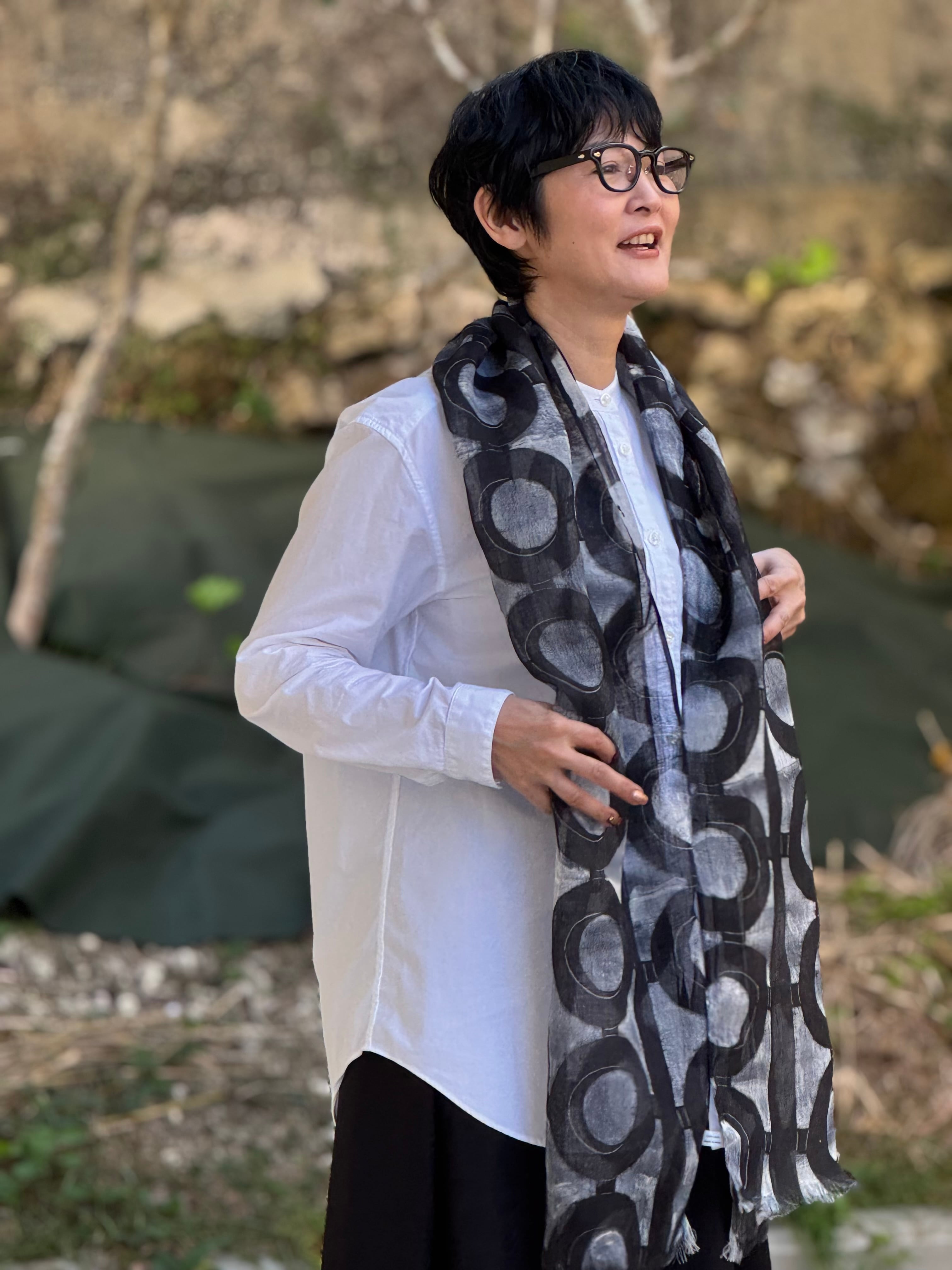 沖縄建築の花ブロックをモチーフにした型染めストールです。 ザラっとしたブロックの質感を出すために防染糊を割り、そのひび割れたとろから染料が滲み出して均一でない余白を表現しています。 モノトーンのストールで色々な表情をお楽しみください。 ・サイズ:幅(約43cm) 長さ(186cm) ・素材:インドリネン100% 化学染料を使用。 【お取り扱い方法】 KATACHIKIのストールはご自身で手洗いすることができます。(特別なクリーニングなどする必要はございません) お洗濯する際は他の物と一緒にせず漂白剤、蛍光剤が入っていない洗剤で押し洗いしてください。 強く擦ったり、濡れた状態で擦ると色移りする場合がありますのでご注意ください。 濡れた場合はそのまま使用せず陰干し、よく乾燥させてからご使用ください。 手染めならではの表情や色の変化をお楽しみください。 ■ 発送・注文に関する情報や注意事項 ご注文後、通常3〜5営業日以内に発送いたします。お届け先の地域によってはさらにお時間をいただく場合がありますので、予めご了承ください。 ■ 返品、交換について 商品の破損や欠陥があった場合、ご返金又は別の柄との交換をさせて頂きます。 到着後7日以内にご連絡ください。送料はこちらで負担します。 ■ その他の情報や注意事項 手作りの製品ですので、サイズや色合いに若干の違いが生じることがございます。その個性を楽しんでいただけると幸いです。 お問い合わせは、ショップのお問い合わせ、お電話からお気軽にご連絡ください。 KATACHIKI (カタチキ) 098-917-0708