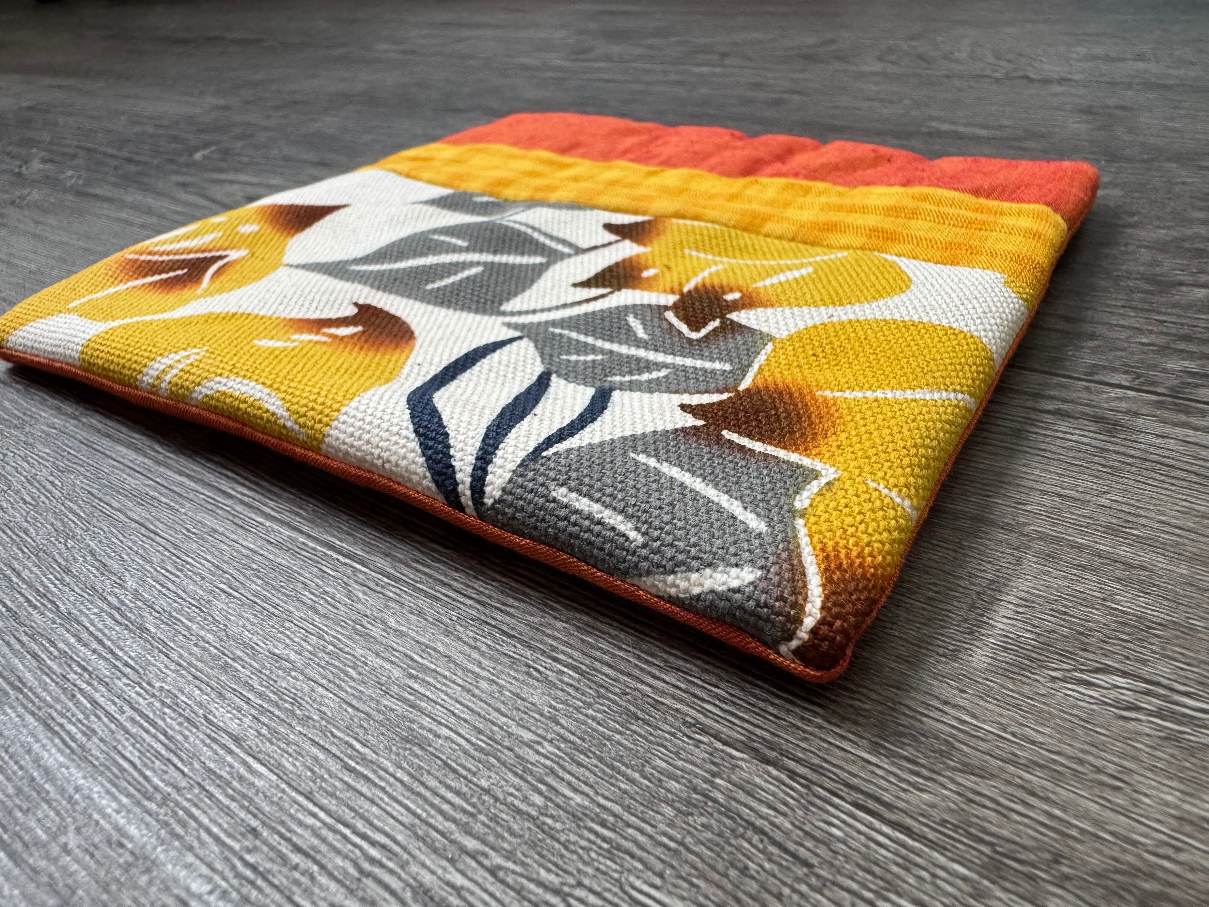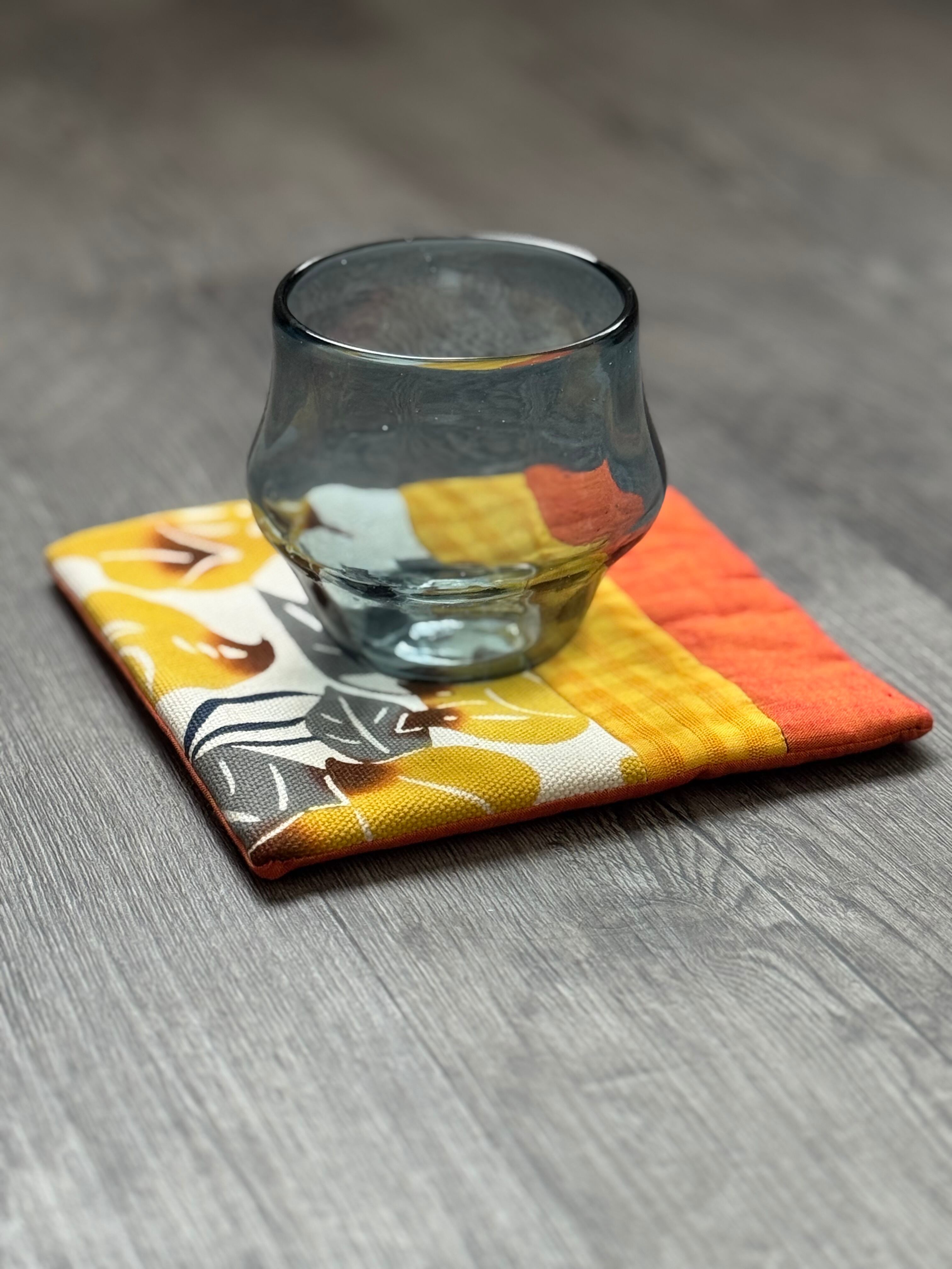 手染め紅型の布をパッチワークして制作したティーマットです。
