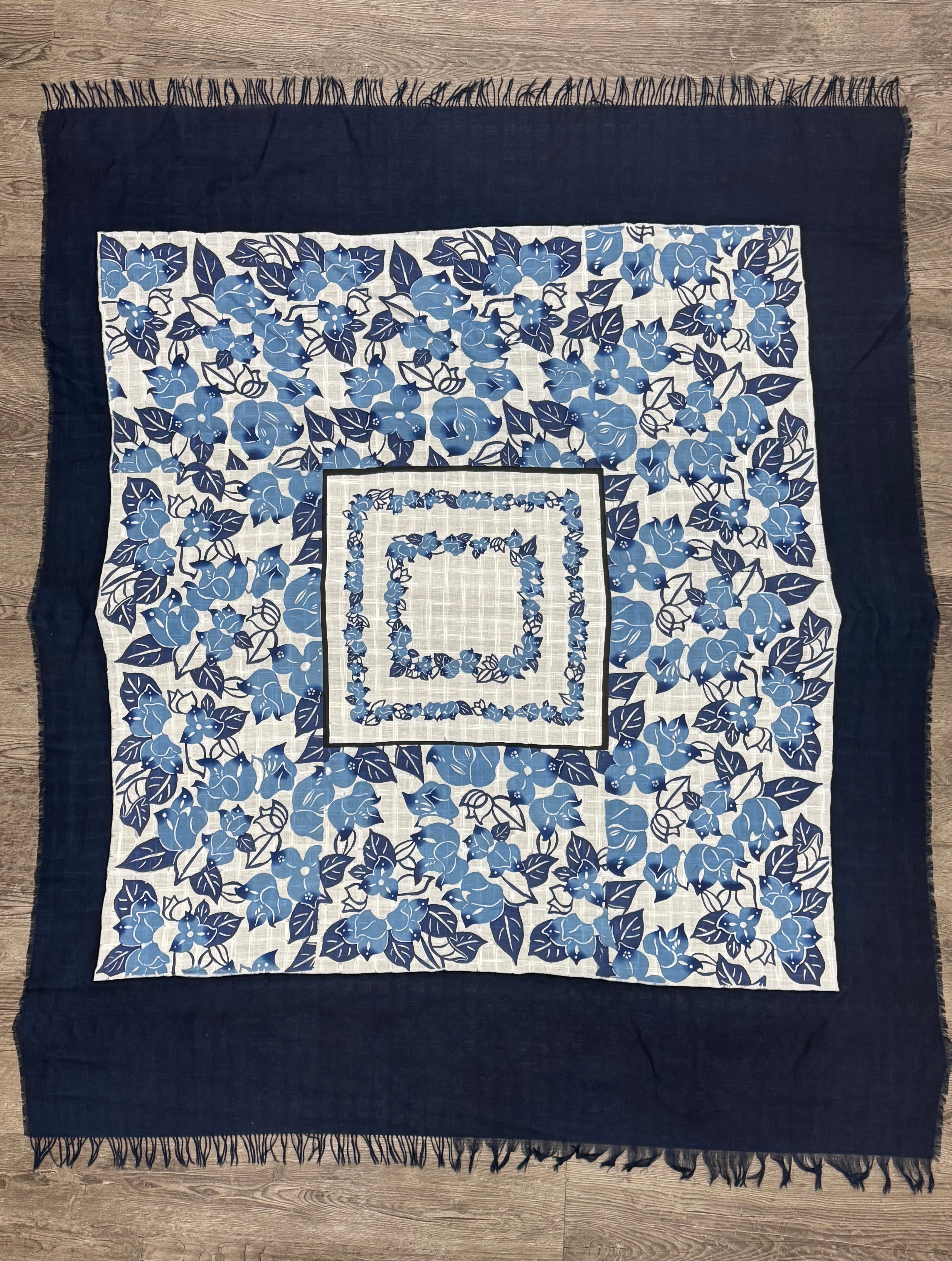 ブーゲンビリア柄の異なる型紙をふたつ用いてデザインしたスクエアストールです。