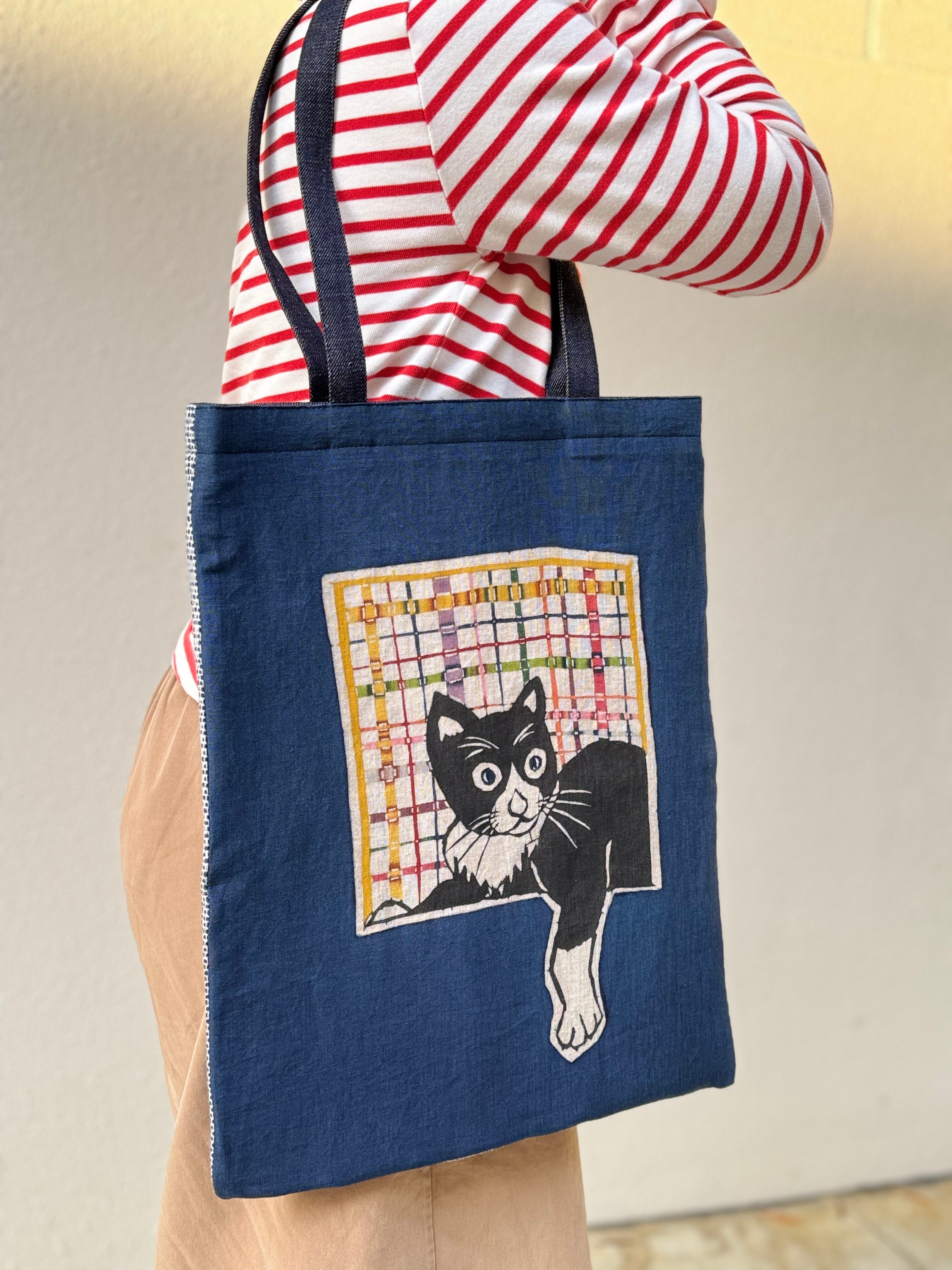 子猫が窓際にちょこんと座っている様子をモチーフにしたデザイン、A4サイズが入る大きさです。
