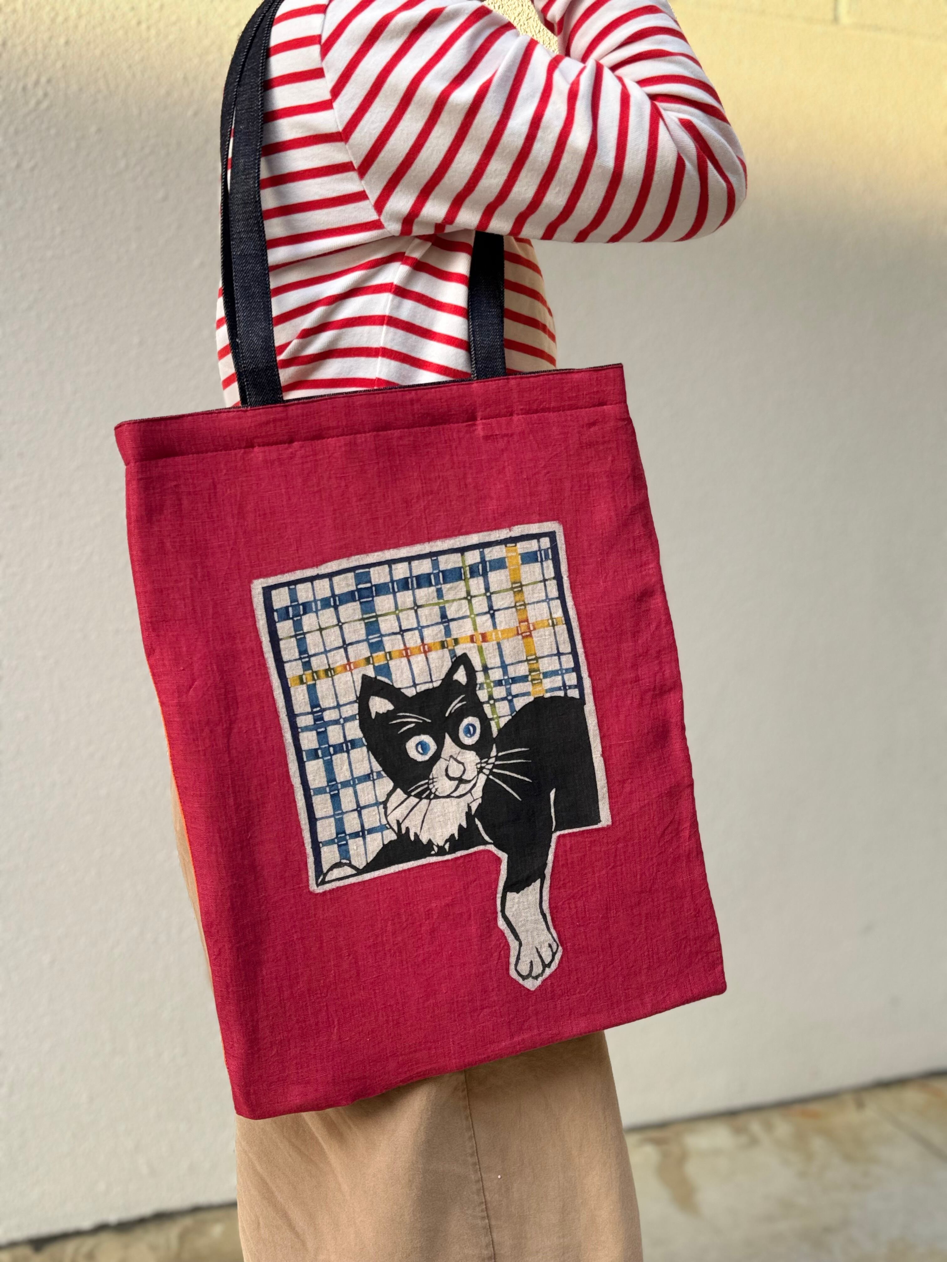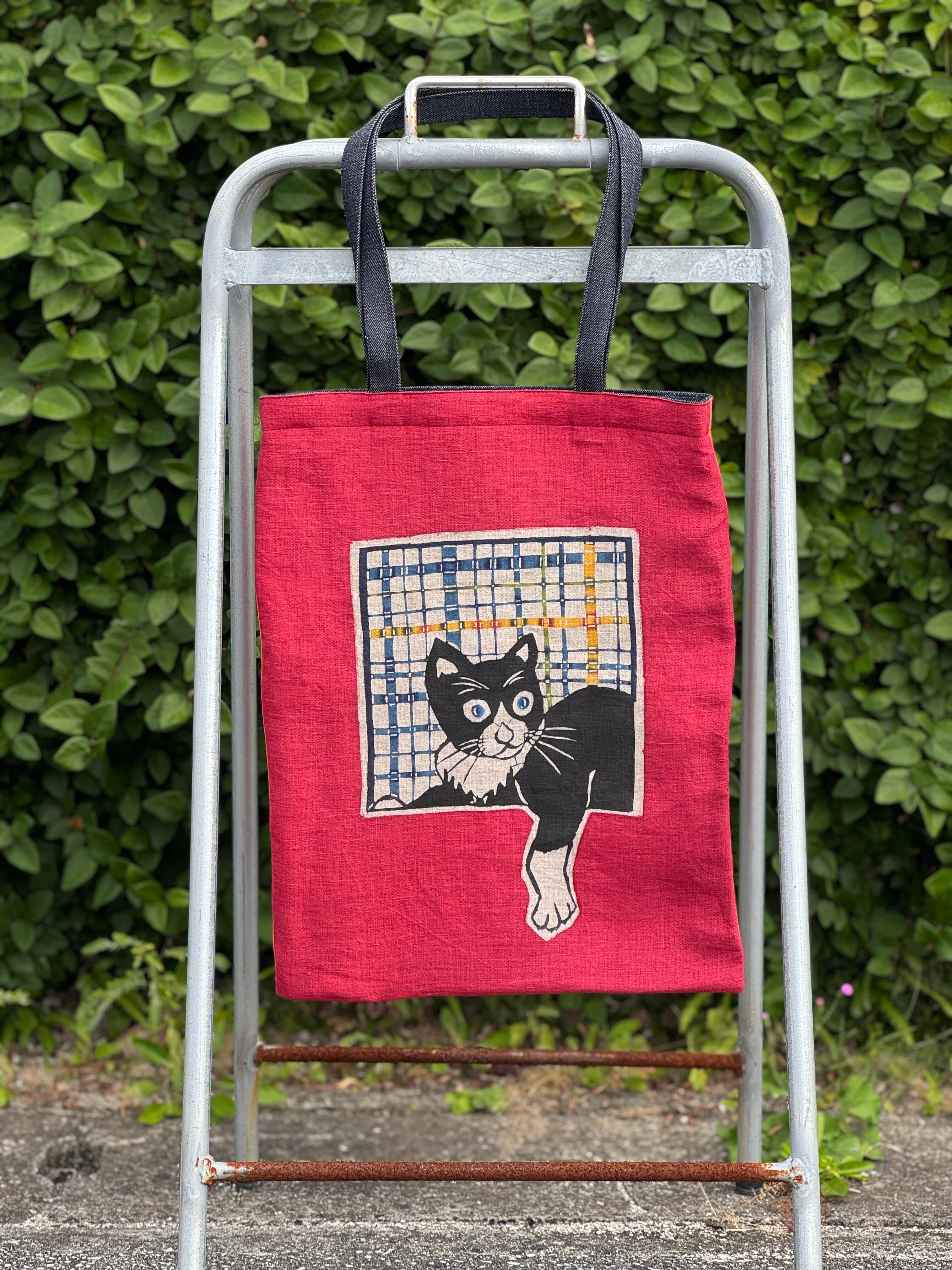 子猫が窓際にちょこんと座っている様子をモチーフにしたデザイン、A4サイズが入る大きさです。