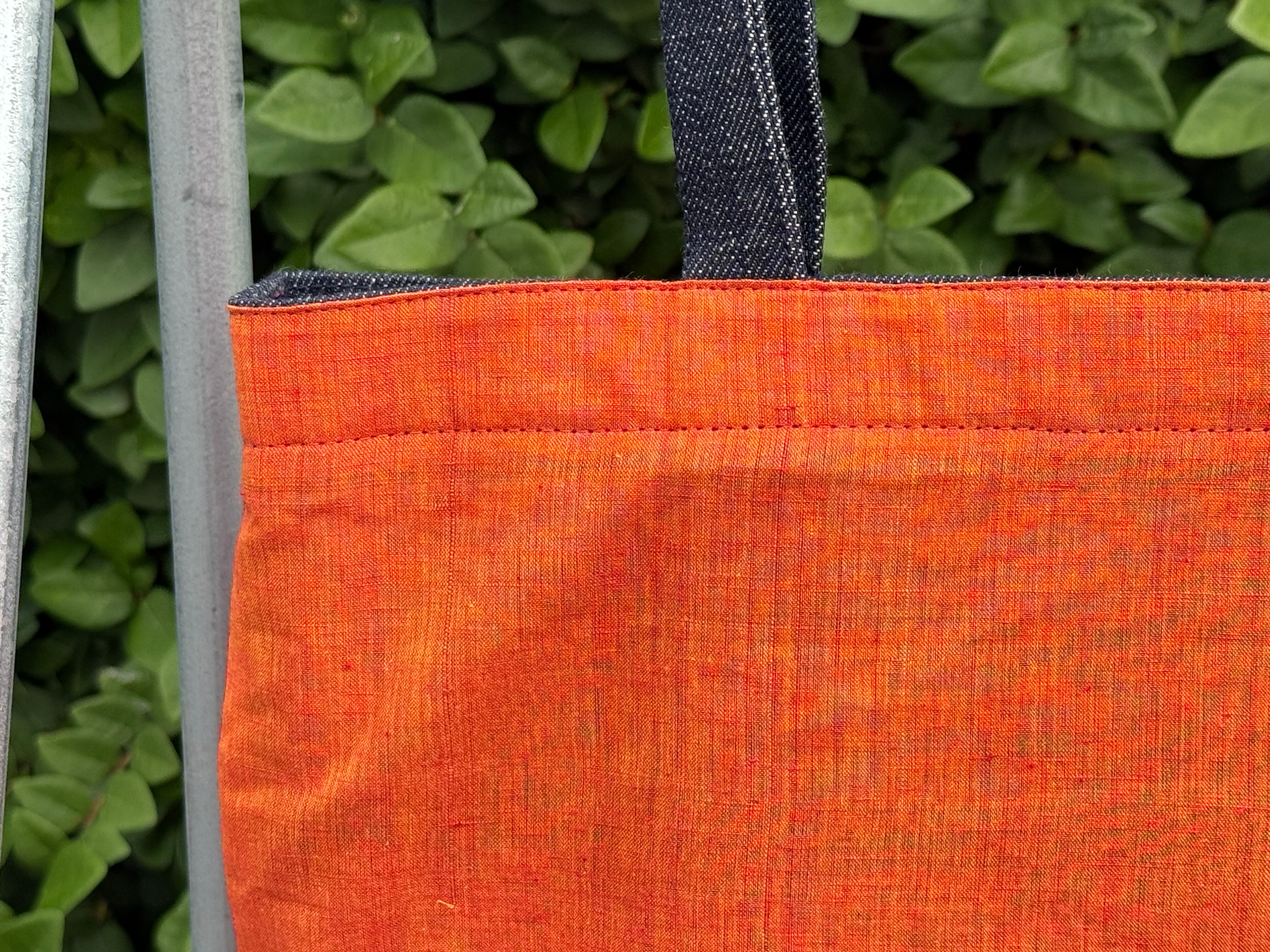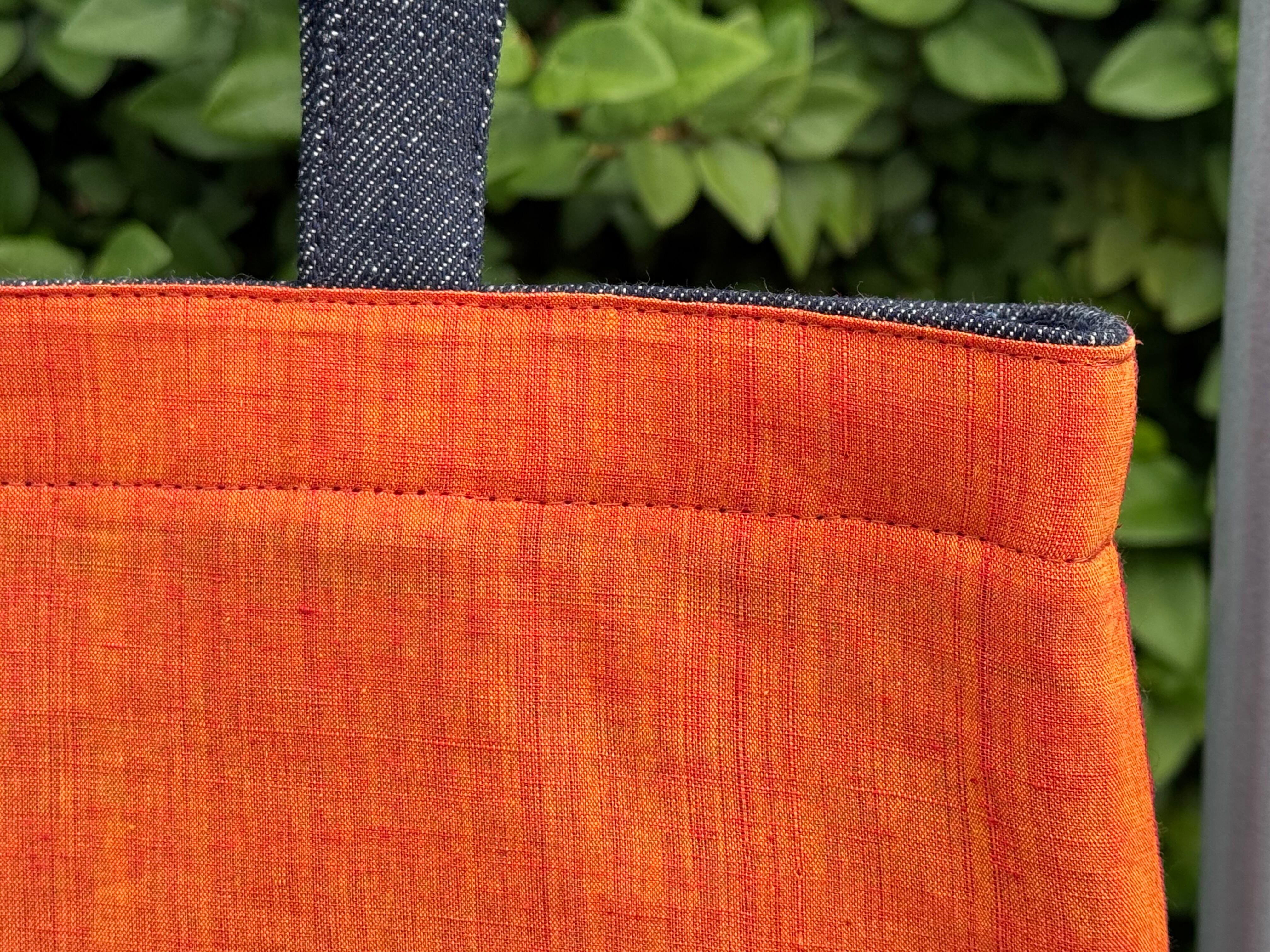 素材:表・麻100% 裏・綿100% 中、持ち手・綿100%