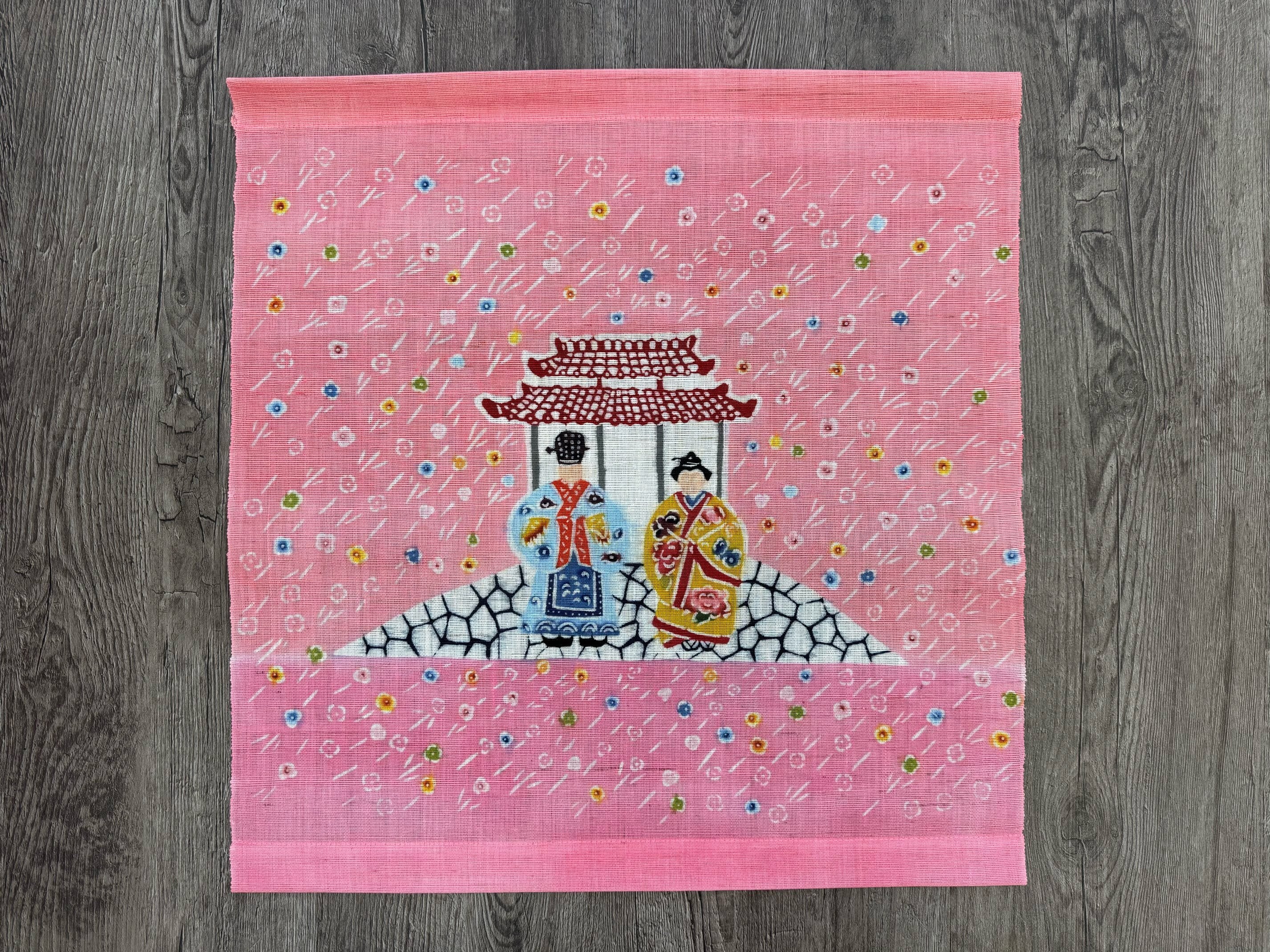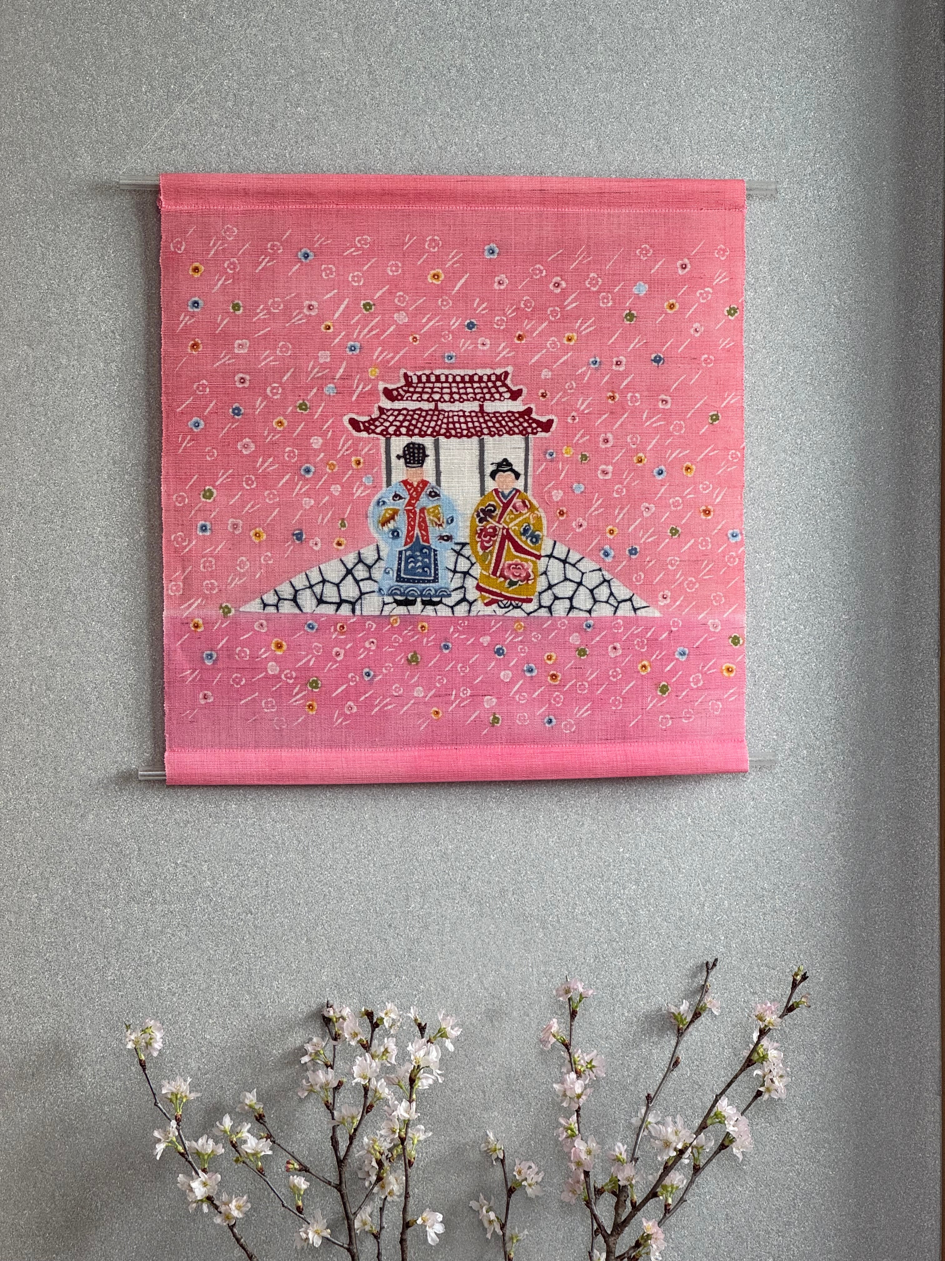 新作の紅型タペストリー「琉球雛(りゅうきゅうびな)」が染め上がりました。