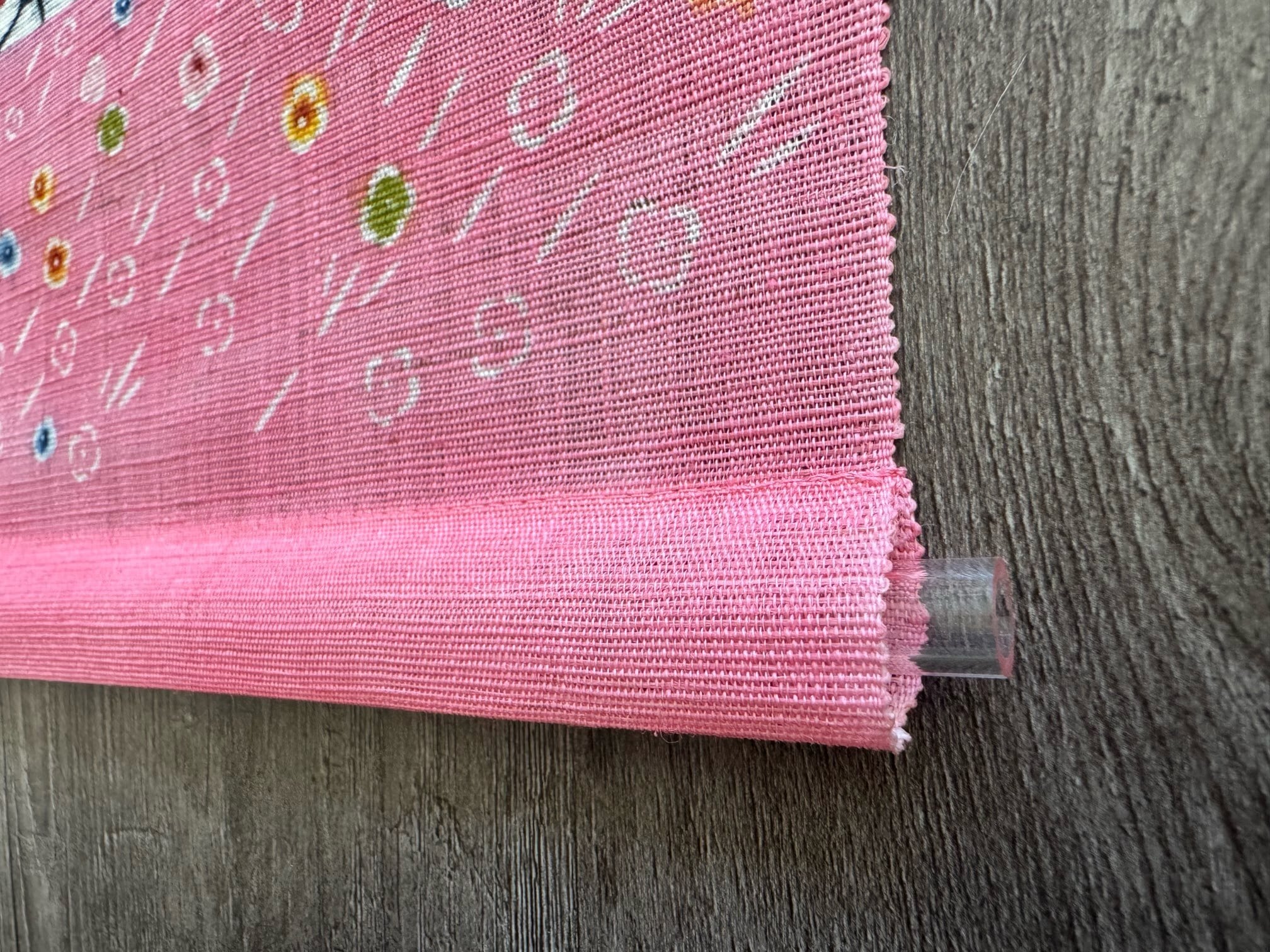 上段部分はサーモンピンク、下段はライトピンクと染め分けしています。