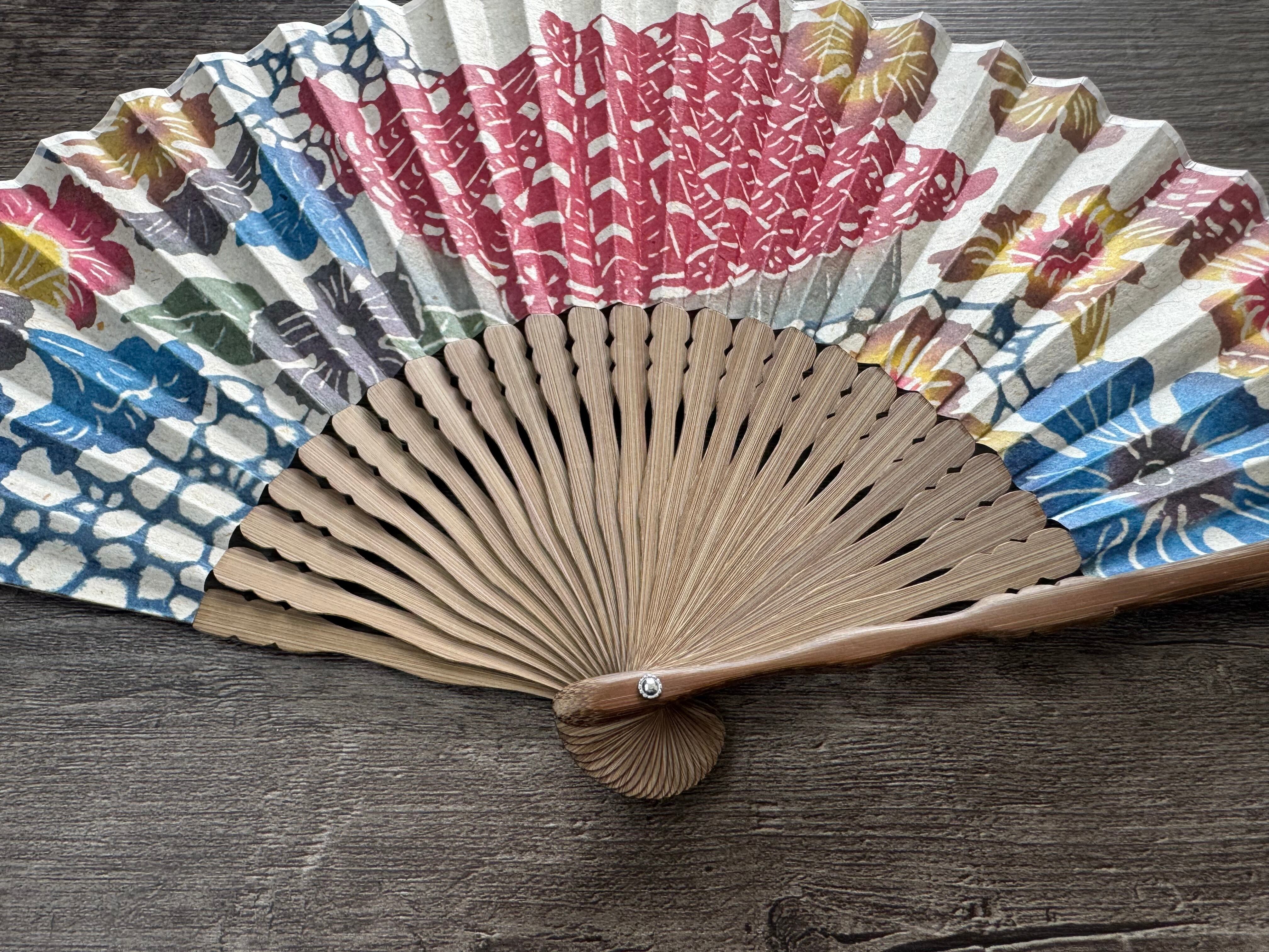 この扇子は、京都の職人によって仕立てられ紅型プリント月桃紙を使用しています。